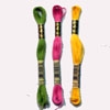 Mouliné DMC 100 % coton, uni, dégradé, ou fils métallisés. Pour 10 écheveaux achetés, le 11è est offert (fils unis).